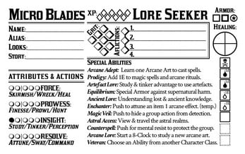 Micro Blades est un jeu réduit à l’essentiel – on parle aussi de jeu de rôle minimaliste – qui se base sur le socle de Blades in the Dark de John Harper.
